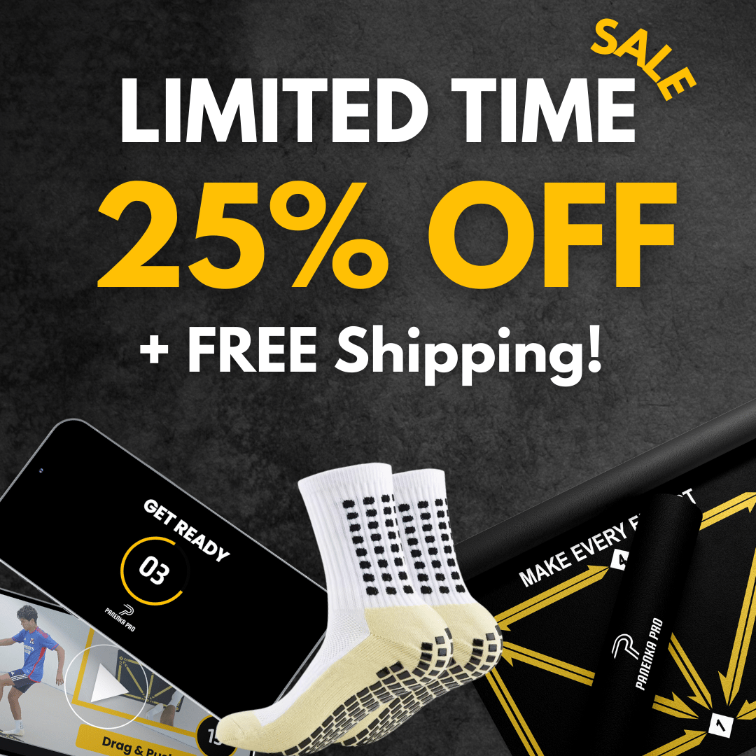 Turn any bedroom into a training ground. You only need a 6x6 feet space, our Panenka Pro™ soccer mat, and a device for watching our program to become the best player on the team.